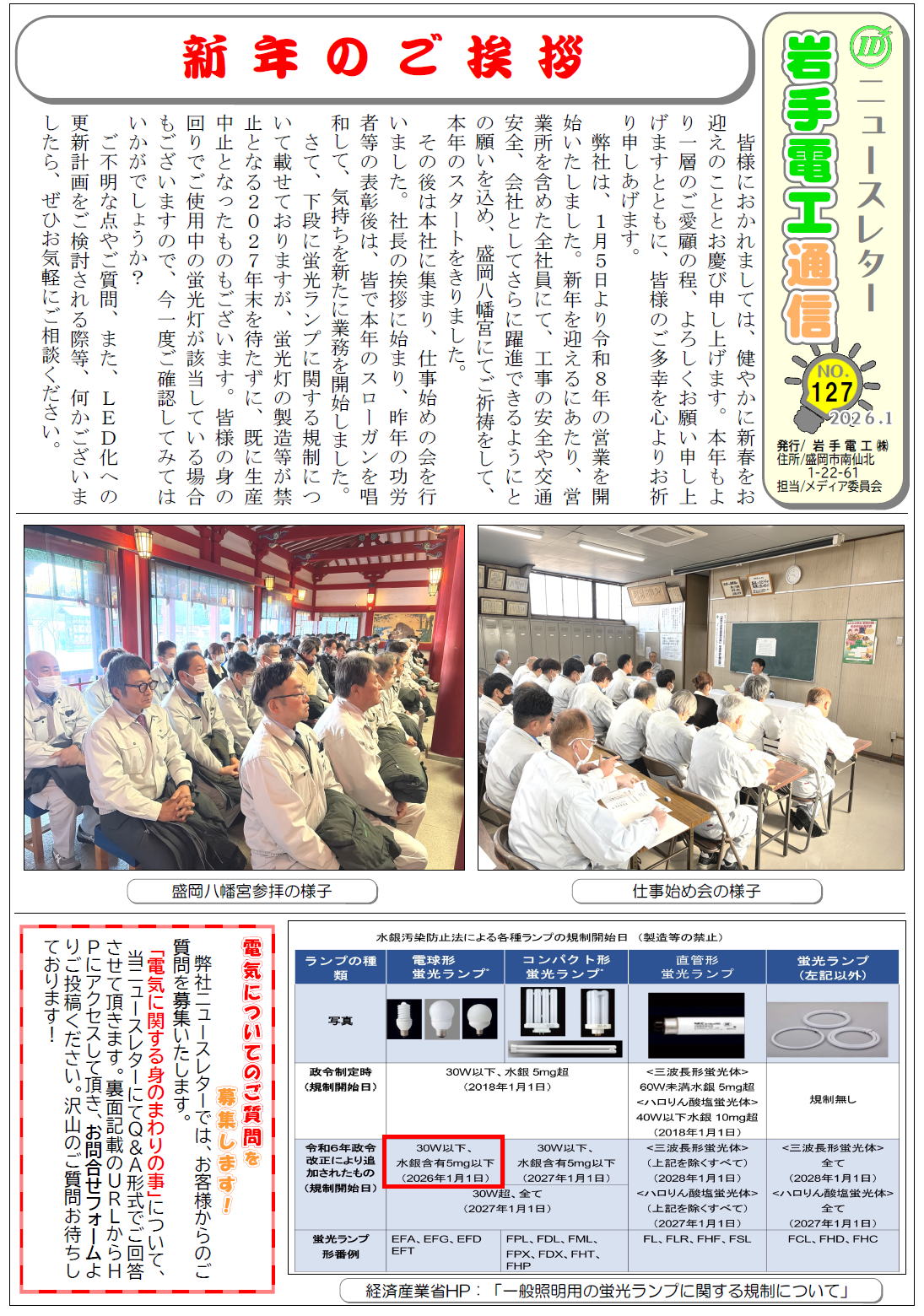 ◆ニュースレター、岩手電工通信を定期的に発行しています。
