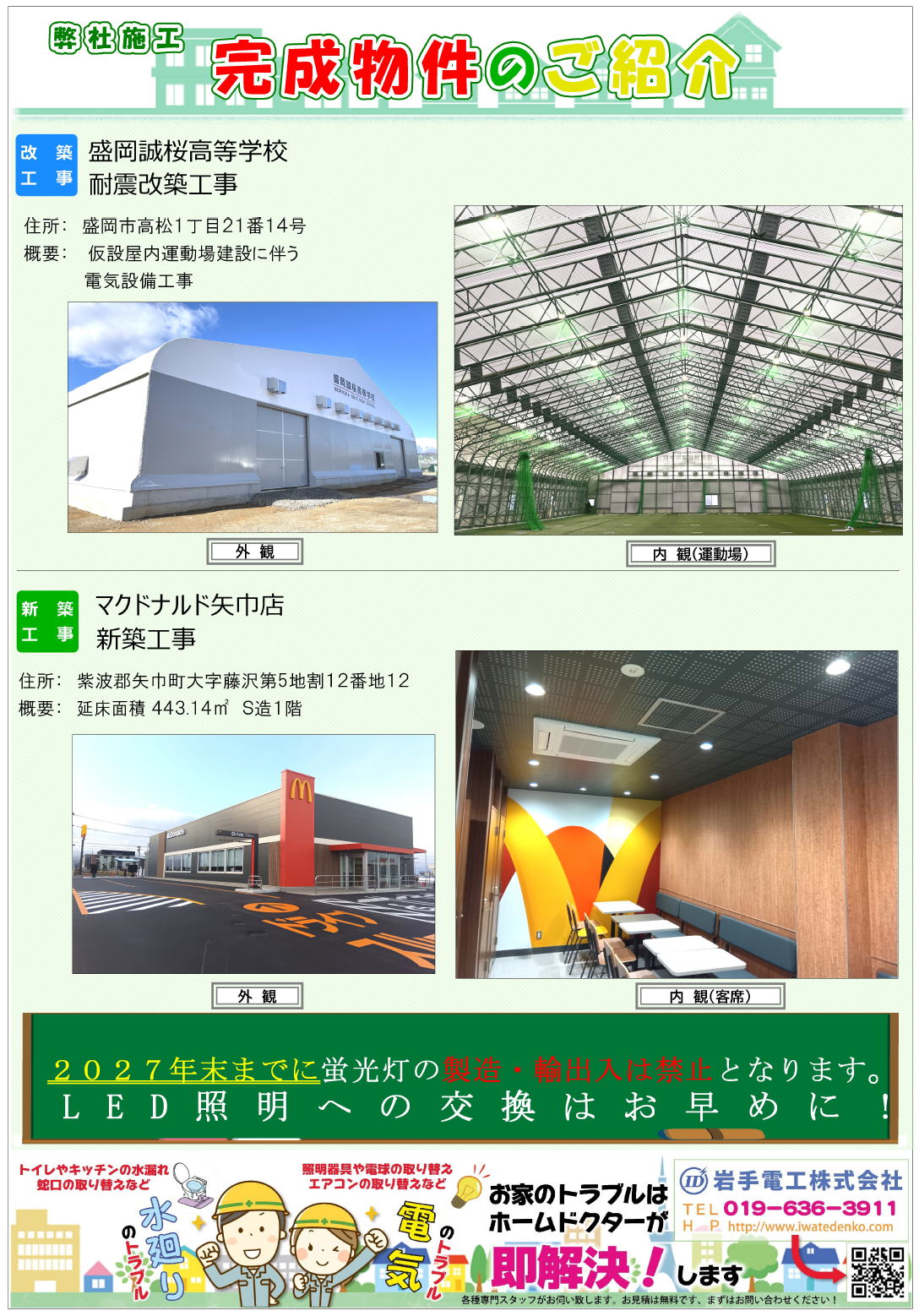 岩手県の電気工事・空調工事・給排水工事は岩手電工におまかせください